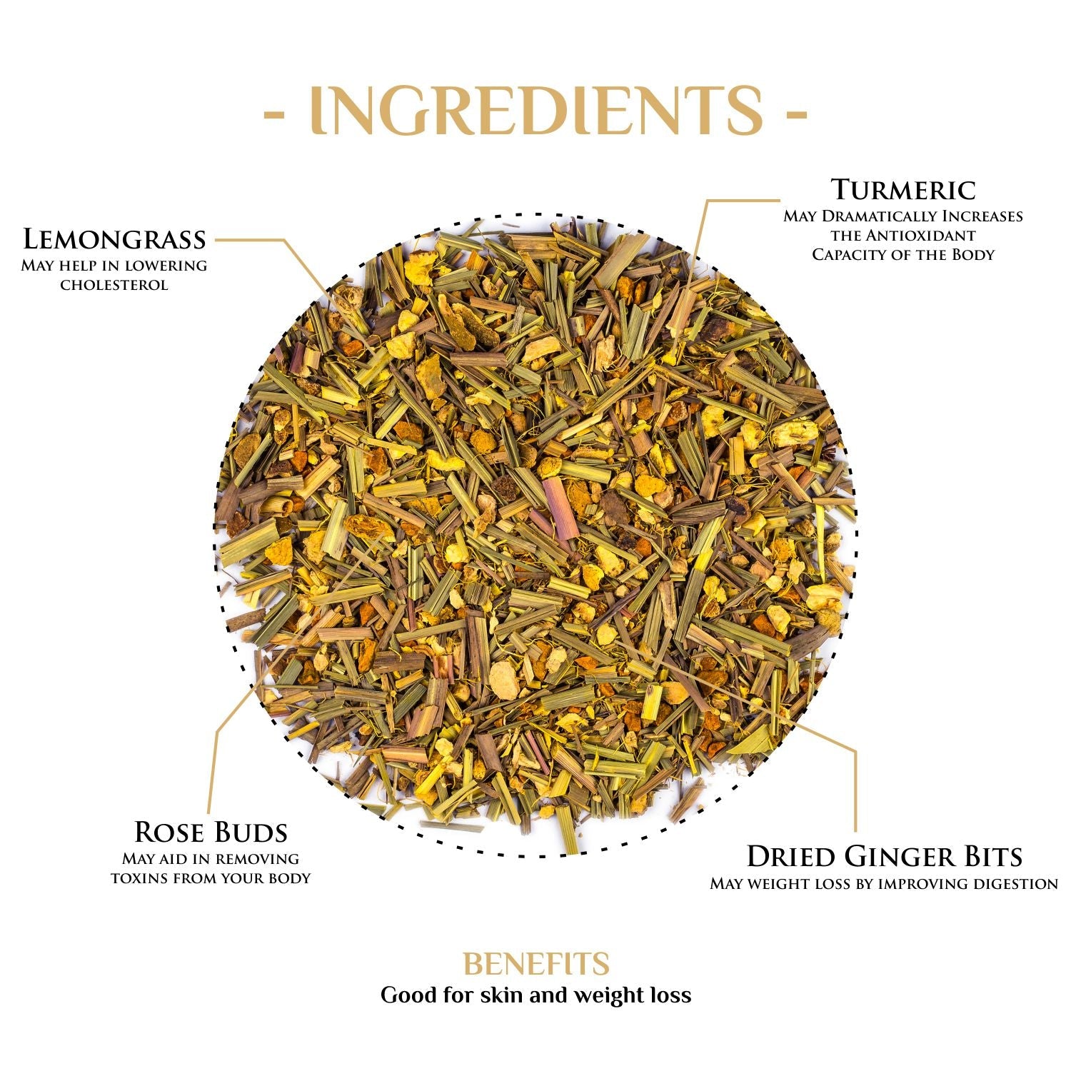 lemongrass, dried ginger, turmeric, rose buds & herb mix